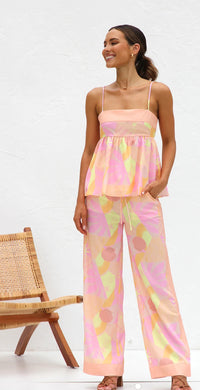 A beautiful summery, easy to wear pull on pant in a stunning soft beachy printed fabric.